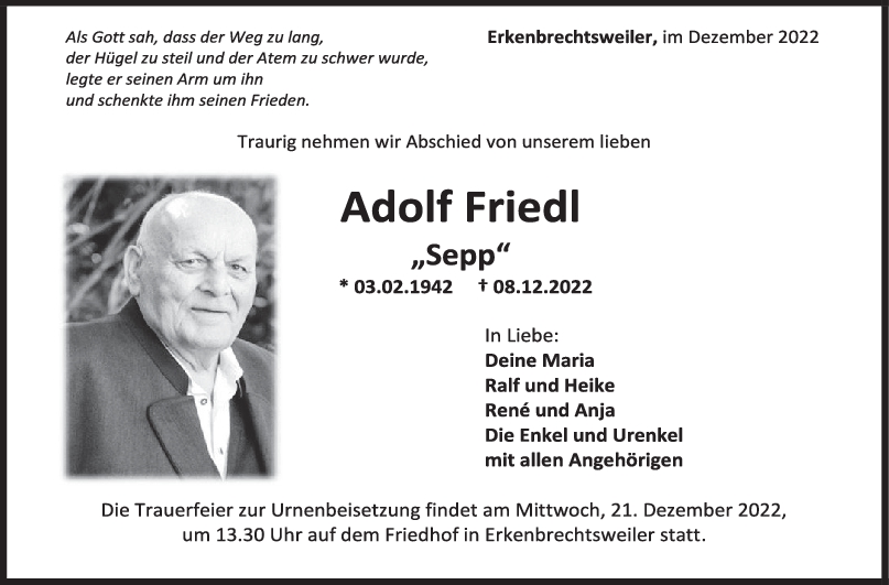 lieber Sepp ruhe in Frieden, Aufrichtige Anteilnahme für Maria und Hinterbliebenen