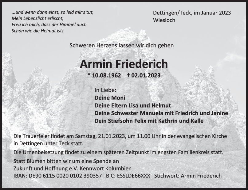 In Dankbarkeit, dass wir uns in diesem Leben begegnen durfen und im Wissen, dass wir uns irgendwann wiedersehen.