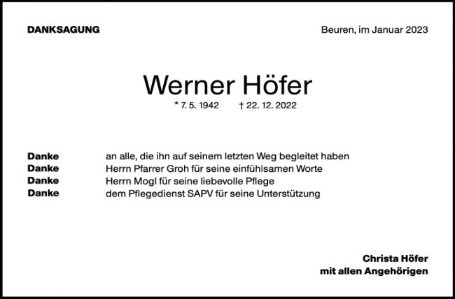 Danksagung Werner Höfer