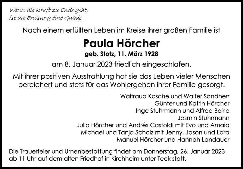 Herzliches Beileid.Sie war eine ganz jahrelange nette Kundin.