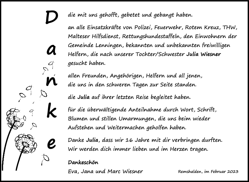 So sehr haben wir uns einen anderen Ausgang gewünscht, wir wünschen euch viel Kraft und irgendwann die Zeit der glücklichen Erinnerungen. Alles alles liebe