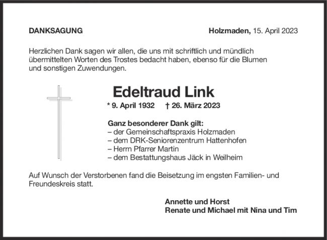 TodesanzeigeVon 15. April 2023Kommentar hinterlassen