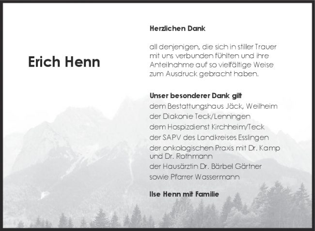 Danksagung Erich Henn