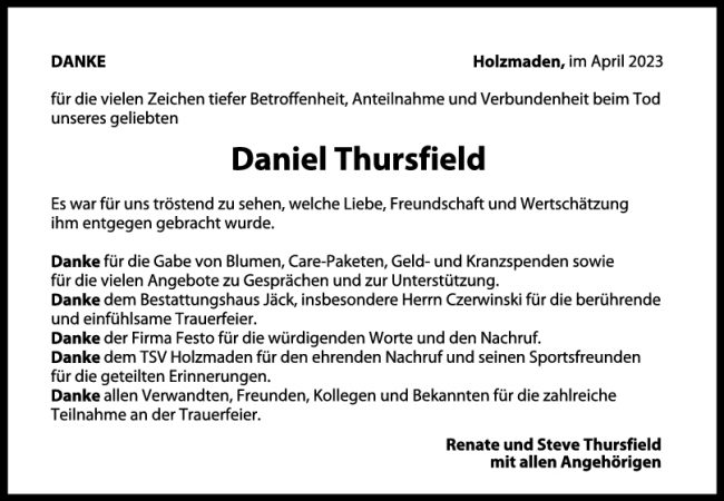 Danksagung Daniel Thursfield 29/04/2023