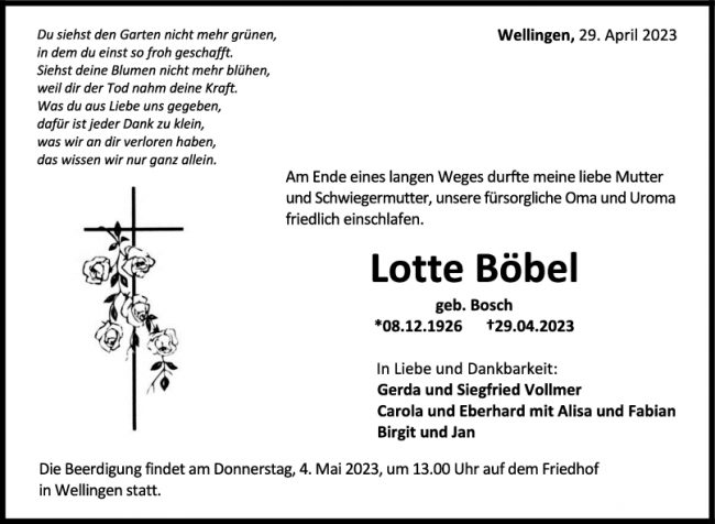 TodesanzeigeVon Benny Kuder2. Mai 2023Kommentar hinterlassen