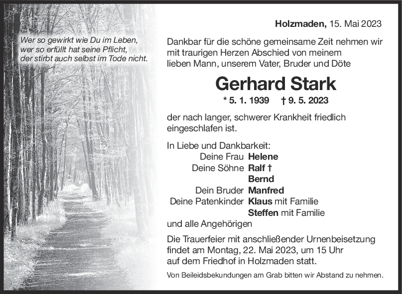 Ruhe in Frieden Onkel Gerhard. Im stillen Gedenken Gisela und Walter.