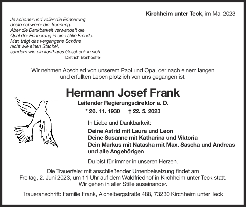 Manche Menschen hinterlassen eine Lücke wenn sie gehen, andere einen Eindruck.