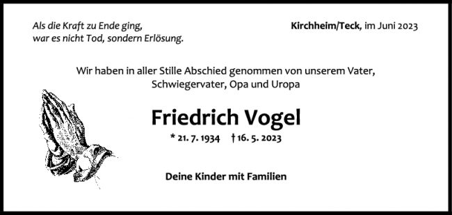 TodesanzeigeVon Benny Kuder31. Mai 20231 Kommentar