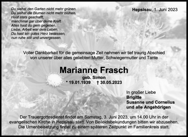 TodesanzeigeVon Benny Kuder31. Mai 2023Kommentar hinterlassen