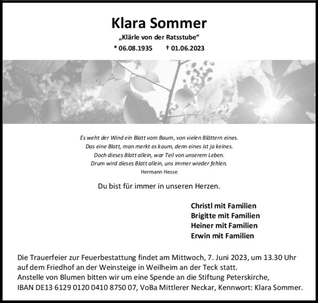 TodesanzeigeVon 3. Juni 20237 Kommentare