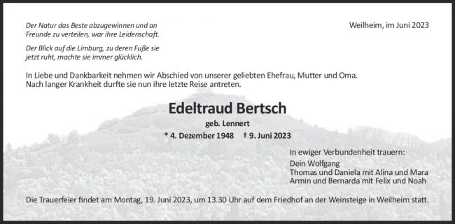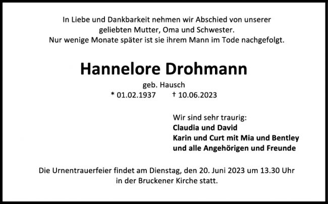 TodesanzeigeVon 14. Juni 20231 Kommentar