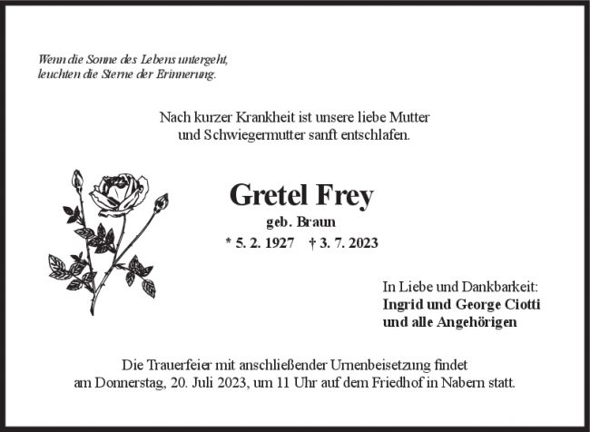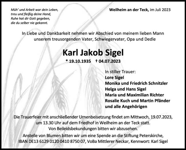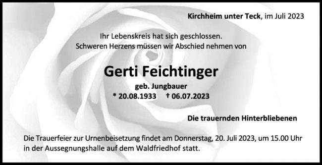 TodesanzeigeVon 15. Juli 2023Kommentar hinterlassen