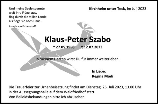 Trauer Klaus-Peter Szabo 22/07/2023