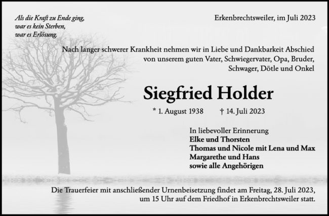 Trauer Siegfried Holder