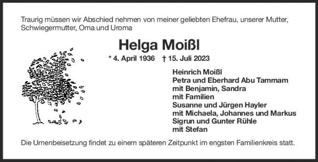 Trauer Helga Moißl