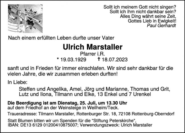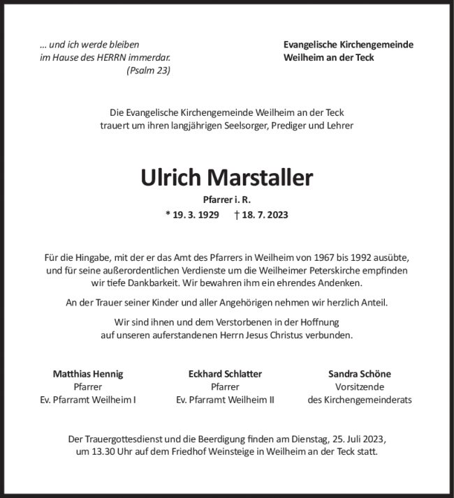 Trauer Ulrich Marstaller 22/07/2023