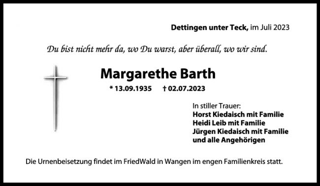 Trauer Margarethe Barth 22/07/2023