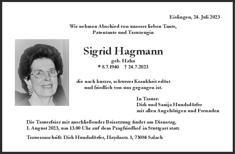 Meine liebe Kollegin in der Zeit von 1995 bis 2000, Ruhe in Frieden, liebe Frau Hagmann