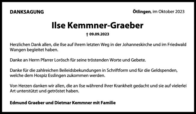 Danksagung Ilse Kemmner-Graeber 05/10/2023