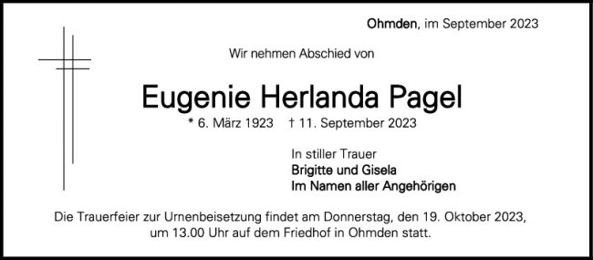Trauer Eugenie Herlanda Pagel