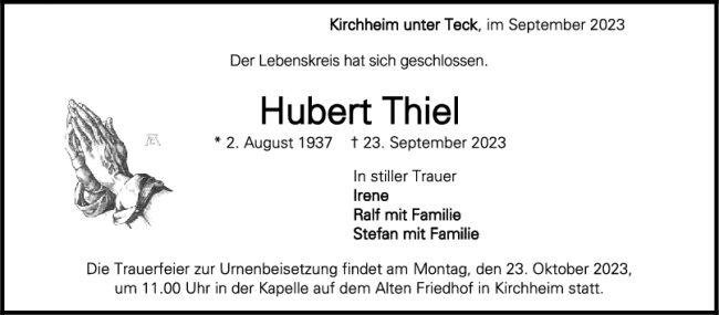 Trauer Hubert Thiel