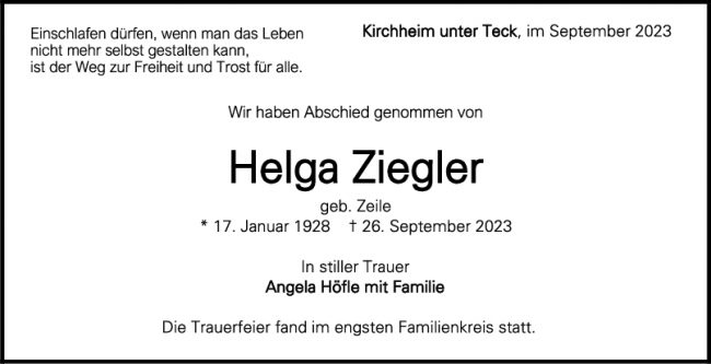 Trauer Helga Ziegler