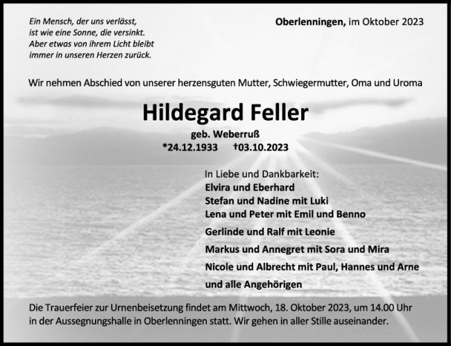 Trauer Hildegard Feller