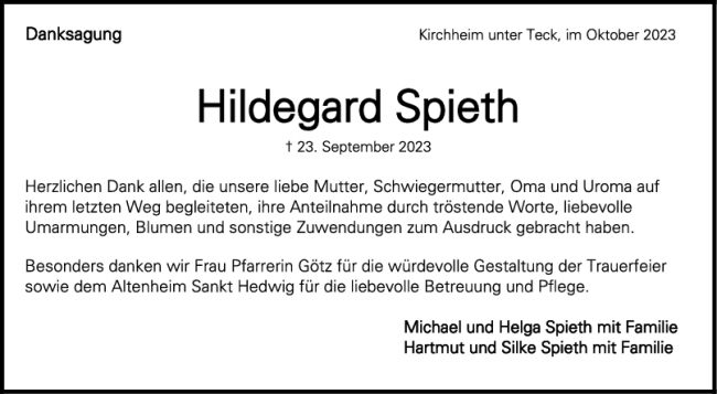 Danksagung Hildegard Spieth