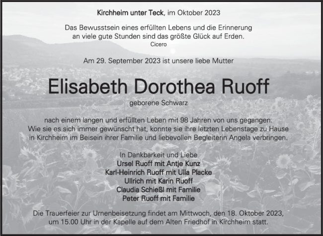 Trauer Elisabeth Dorothea Ruoff