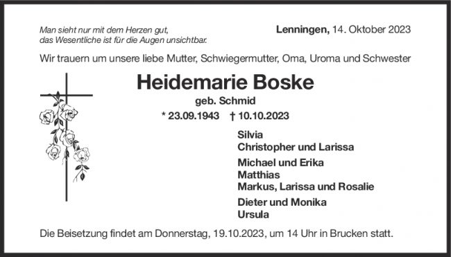 Trauer Heidemarie Boske 14/10/2023