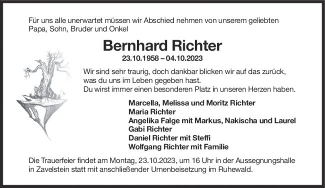 TodesanzeigeVon 15. Oktober 20231 Kommentar