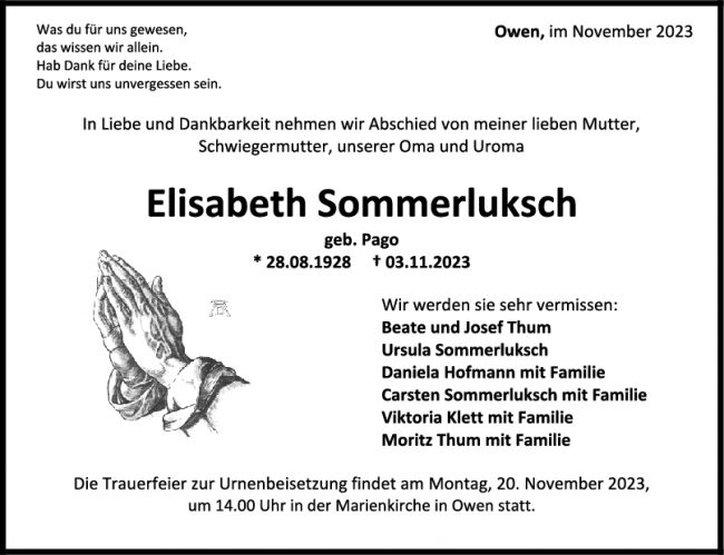 TodesanzeigeVon 15. November 2023Kommentar hinterlassen