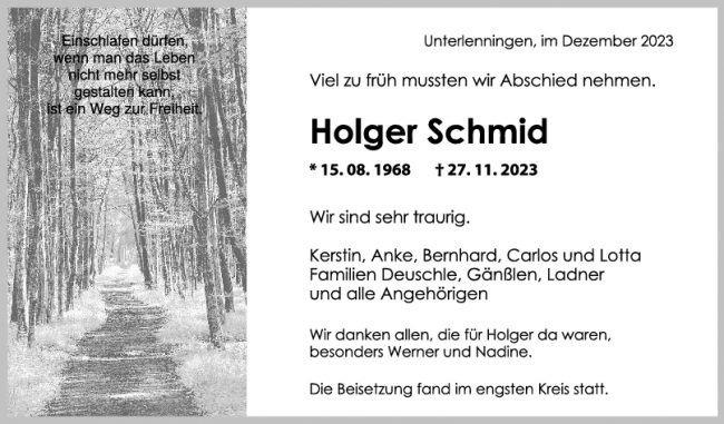 TodesanzeigeVon Benny Kuder10. Dezember 2023Kommentar hinterlassen