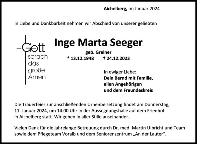 TodesanzeigeVon 6. Januar 20241 Kommentar
