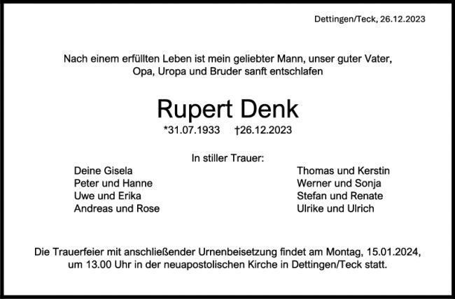 TodesanzeigeVon Benny Kuder6. Januar 20246 Kommentare