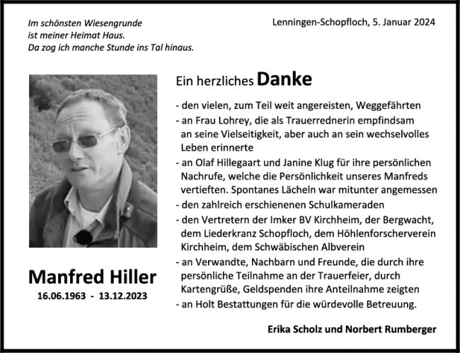 Danksagung Manfred Hiller