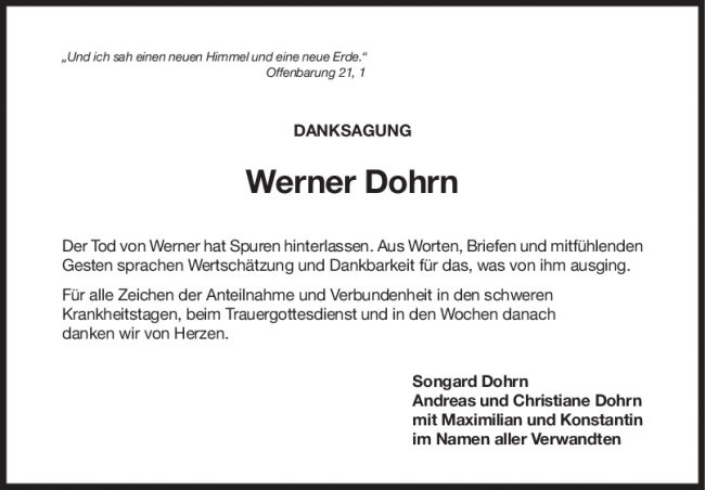 Danksagung Werner Dohrn