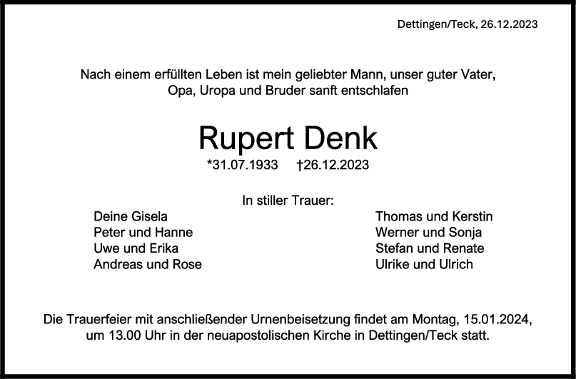 Unser Mitgefühl gilt Ihnen und Ihrer Familie.