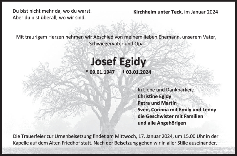 Zum Verlust deines Bruder Josef