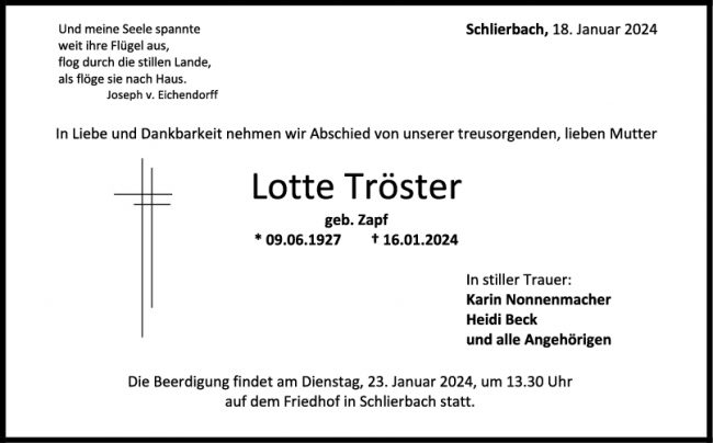 TodesanzeigeVon 17. Januar 2024Kommentar hinterlassen