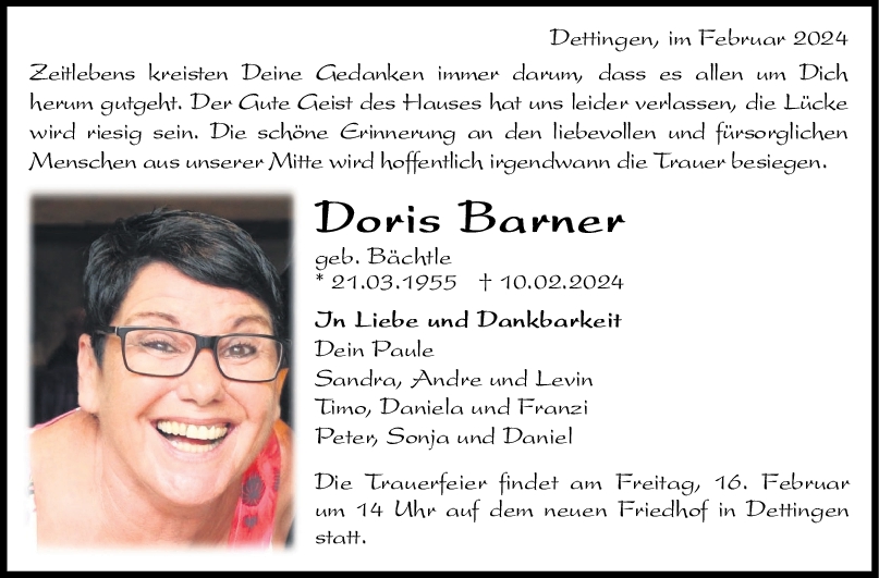 Hallo Doris,ruhe sanft,den Angehörigen viel Kraft.