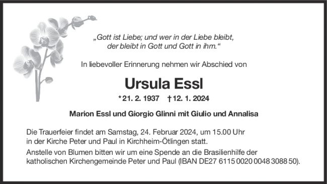 TodesanzeigeVon 17. Februar 2024Kommentar hinterlassen