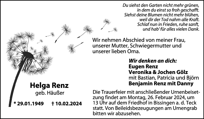Mein tiefstes Beileid,Ruhe in Frieden,liebste Helga.