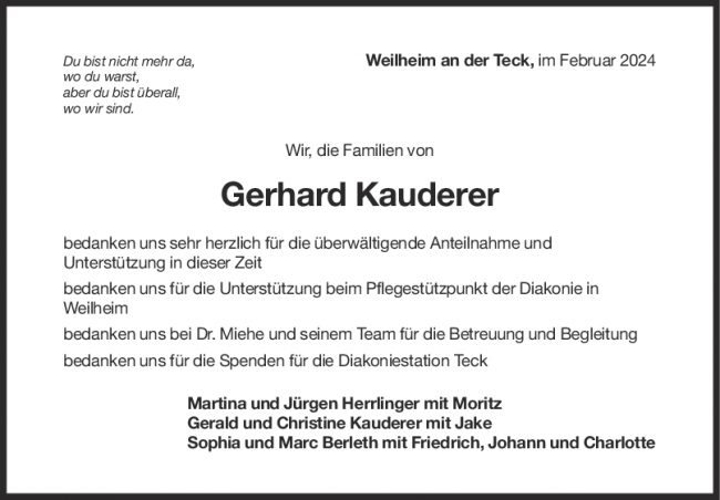 Danksagung Gerhard Kauderer