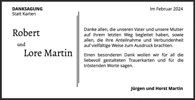 Danksagung Robert und Lore Martin