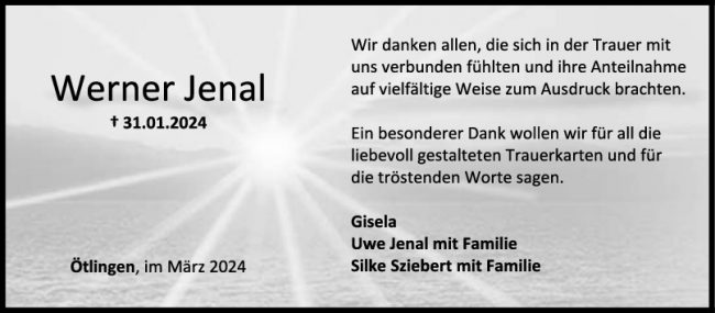 Danksagung Werner Jenal