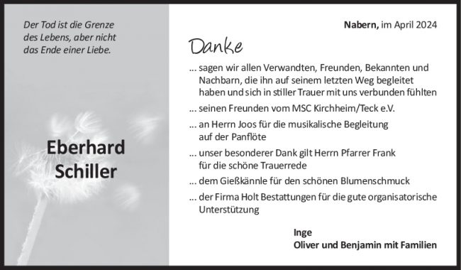 Danksagung Eberhard Schiller