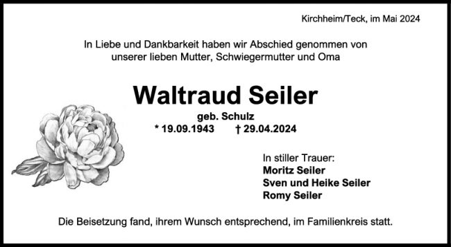 Trauer Waltraud Seiler
