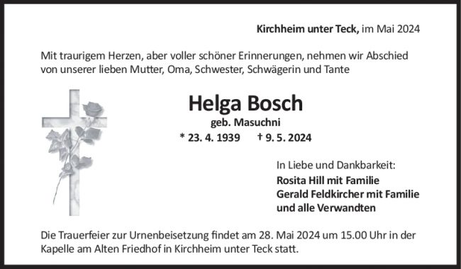 Trauer Helga Bosch
