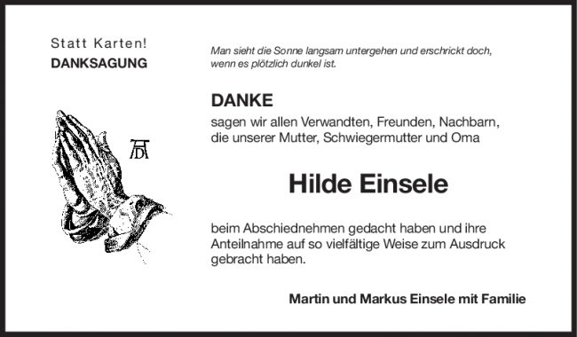 Danksagung Hilde Einsele